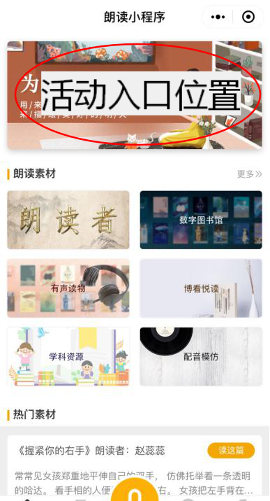 1、诵读素材要求贴近活动主题,围绕“共同战疫”、“红色经典”、“热爱生命”等,选择内容健康、思想积极向上的诵读作品。作品可选自博看素材资源库,也可自带书本或上传自定义读本内容,鼓励原创内容。