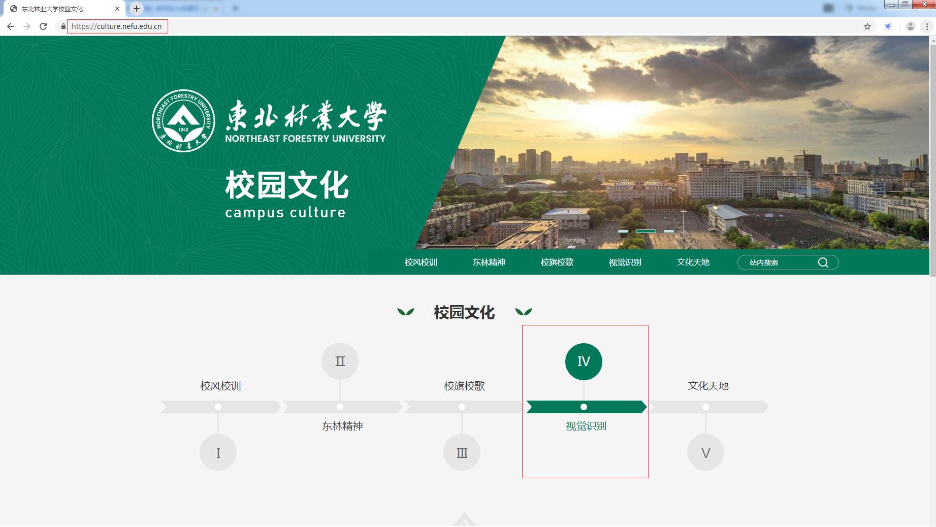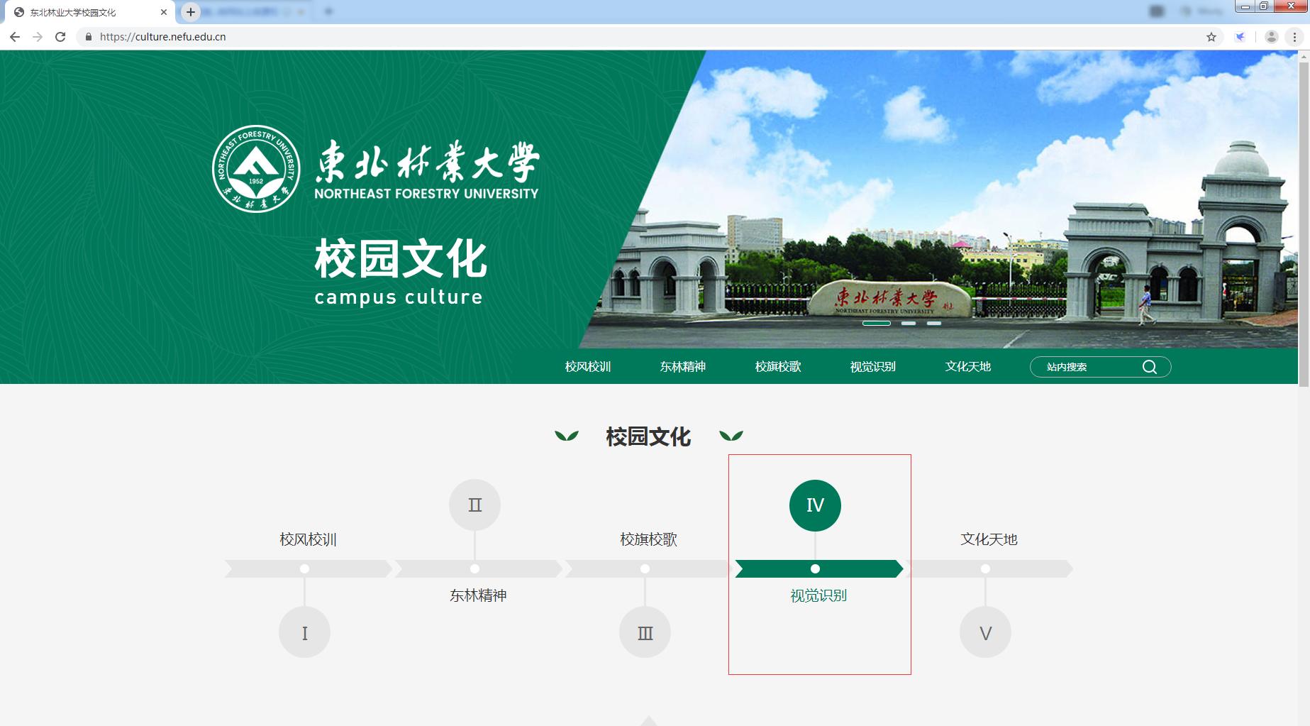 直接在浏览器中输入https://culture.nefu.edu.cn/直接前往“校园文化”网站中的“视觉识别”版块进行访问(见图3)