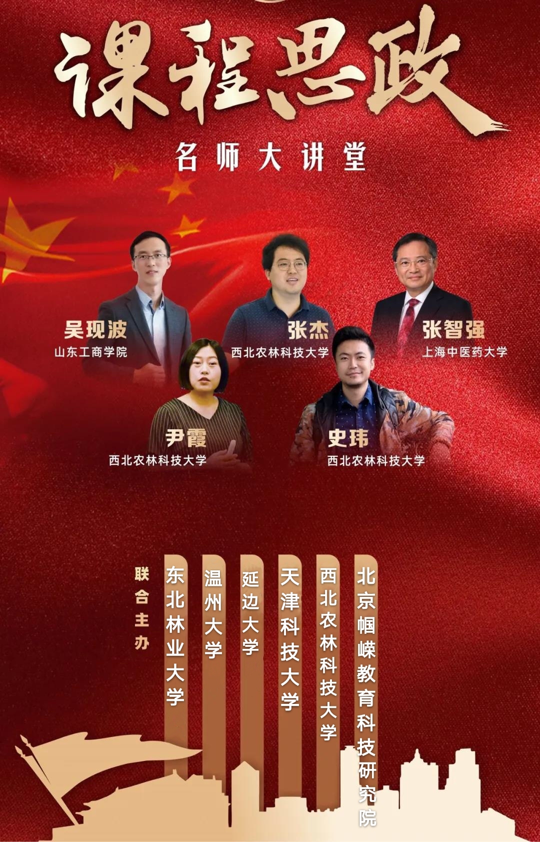 为进一步贯彻落实《高等学校课程思政建设指导纲要》要求,深入挖据各类课程和教学方法中蕴含的思想政治教育资源,全面提升课程思政育人的能力与效果,我校联合温州大学、延边大学、天津科技大学、西北农林科技大学、北京帼嵘教育科技研究院共同主办课程思政名师大讲堂,现将具体内容通知如下: