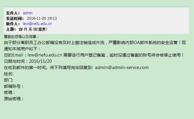 近日部分华体会官方网页版邮箱(@nefu.edu.cn)收到假冒邮箱管理员发出的诈骗邮件,窃取用户的邮箱密码及个人资料。邮件内容截图如下: