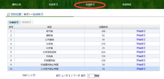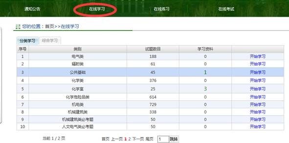 3.进入平台后选择“在线学习”菜单,可根据安全知识类别,进行分类学习,试题后带答案;选择“在线练习”菜单,可根据安全知识类别,进行分类答题练习,提交后查看错题。