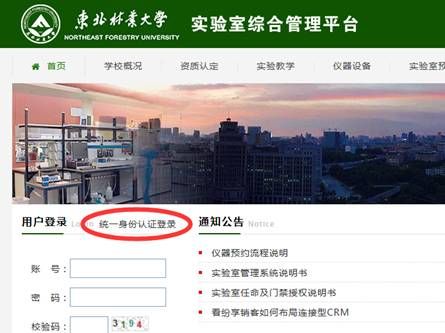 1.登录“华体会官方网页版实验室综合管理平台”(网址http://sys.nefu.edu.cn/),点击统一身份认证登录,用数字东林的用户名和密码。