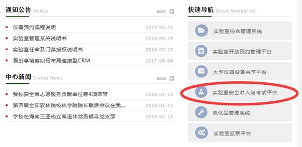 2.进入系统后,点击“实验室安全准入与考试平台”