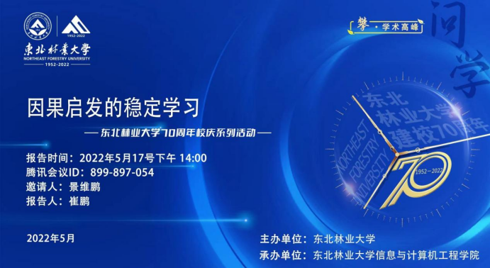 报告人简介:崔鹏,清华大学计算机系长聘副教授,博士生导师。研究兴趣聚焦于大数据驱动的因果推理和稳定预测、大规模网络表征学习等。在数据挖掘及人工智能领域顶级国际会议发表论文100余篇,先后5次获得顶级国际会议或期刊论文奖,并先后两次入选数据挖掘领域顶级国际会议KDD最佳论文专刊。担任IEEE TKDE、ACM TOMM、ACM TIST、IEEE TBD等国际顶级期刊编委。曾获得国家自然科学二等奖、教育部自然科学一等奖、CCF-IEEE CS青年科学家奖、ACM杰出科学家。
