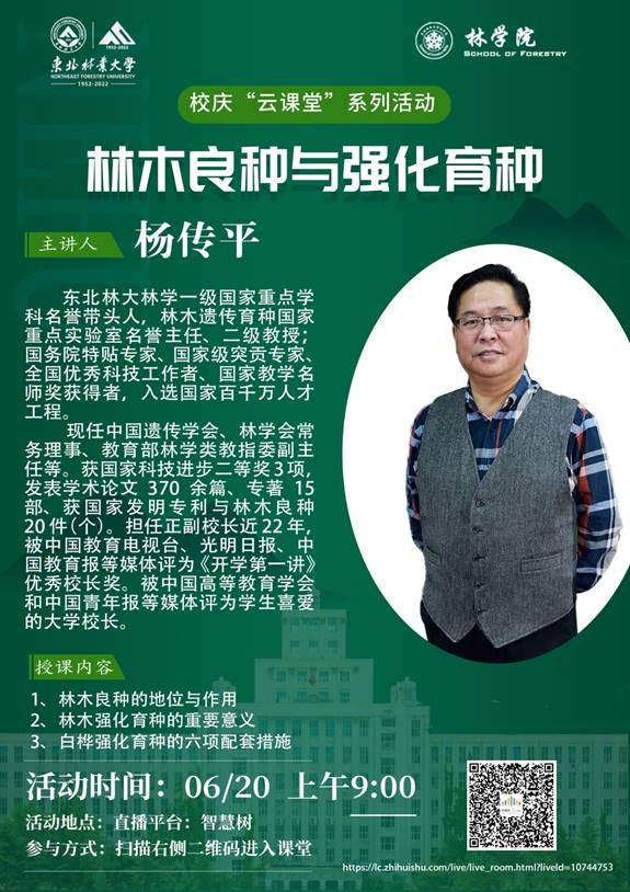 为喜迎我校建校70周年华诞,传承东林使命,赓续林学精神,林学院特开展喜迎建校70周年校庆“云课堂”系列活动。旨在为校友们搭起与母校联络感情的桥梁,重温曾经在校的温暖时光,追忆当年的青春岁月,师生共同述往思来、共谱芳华。同时,启迪在校师生以昂扬向上的精神风貌迎接70年校庆,继往开来,再谱新篇。