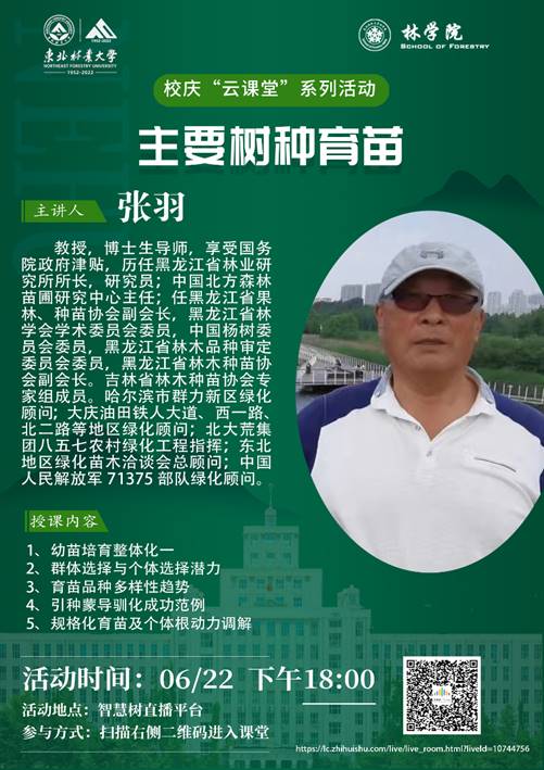 为喜迎我校建校70周年华诞,传承东林使命,赓续林学精神,林学院特开展喜迎建校70周年校庆“云课堂”系列活动。旨在为校友们搭起与母校联络感情的桥梁,重温曾经在校的温暖时光,追忆当年的青春岁月,师生共同述往思来、共谱芳华。同时,启迪在校师生以昂扬向上的精神风貌迎接70年校庆,继往开来,再谱新篇。