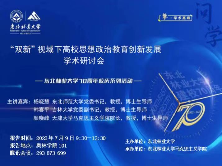 报告题目:“双新”视域下高校思想政治教育创新发展学术研讨会