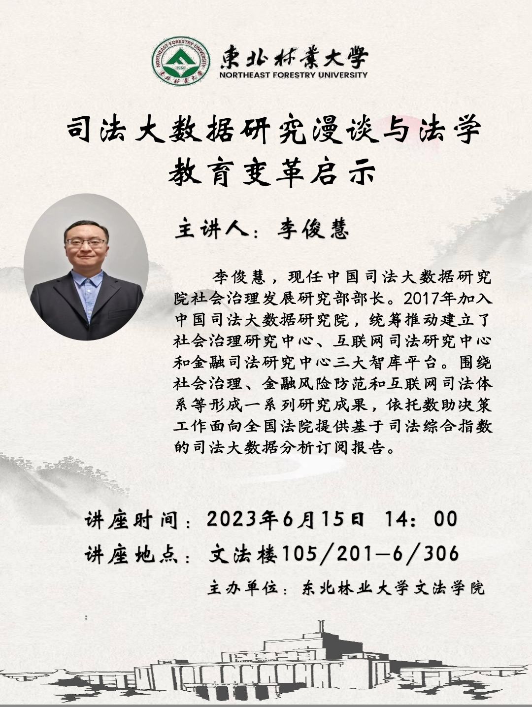 报告题目:司法大数据研究漫谈与法学教育变革启示