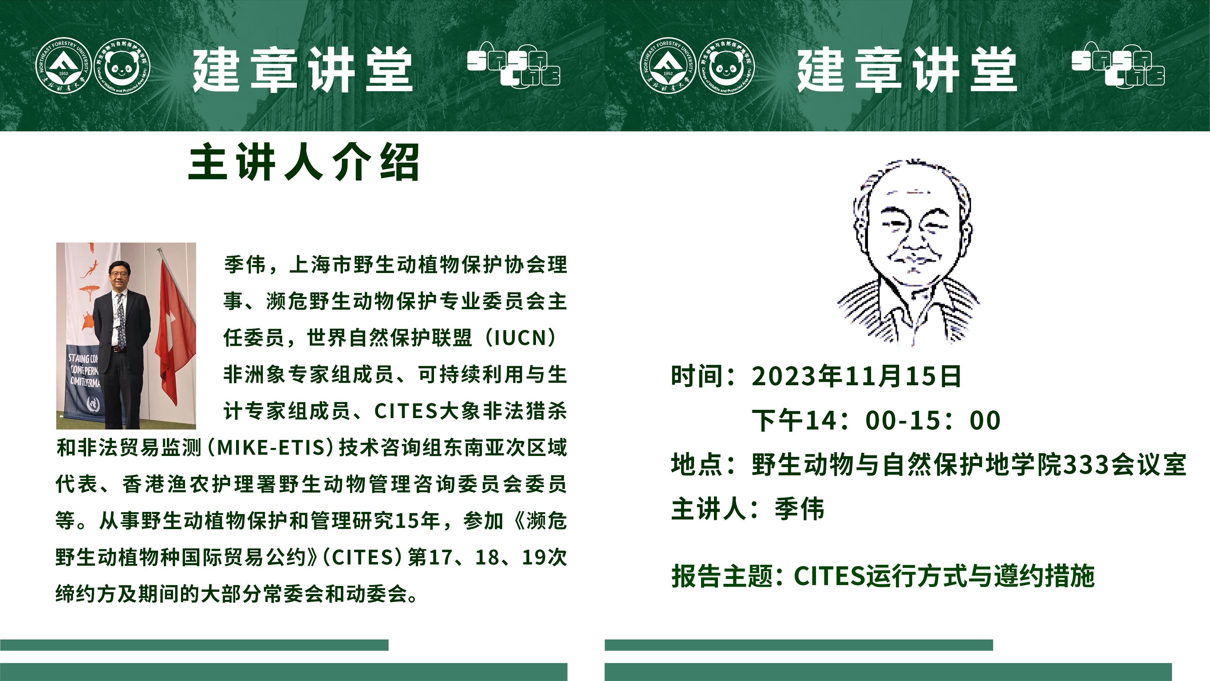 季伟,上海市野生动植物保护协会理事、濒危野生动物保护专业委员会主任委员,世界自然保护联盟(IUCN)非洲象专家组成员、可持续利用与生计专家组成员、CITES大象非法猎杀和非法贸易监测(MIKE-ETIS)技术咨询组东南亚次区域代表、香港渔农护理署野生动物管理咨询委员会委员等。从事野生动植物保护和管理研究15年,参加《濒危野生动植物种国际贸易公约》(CITES)第17、18、19次缔约方及期间的大部分常委会和动委会。