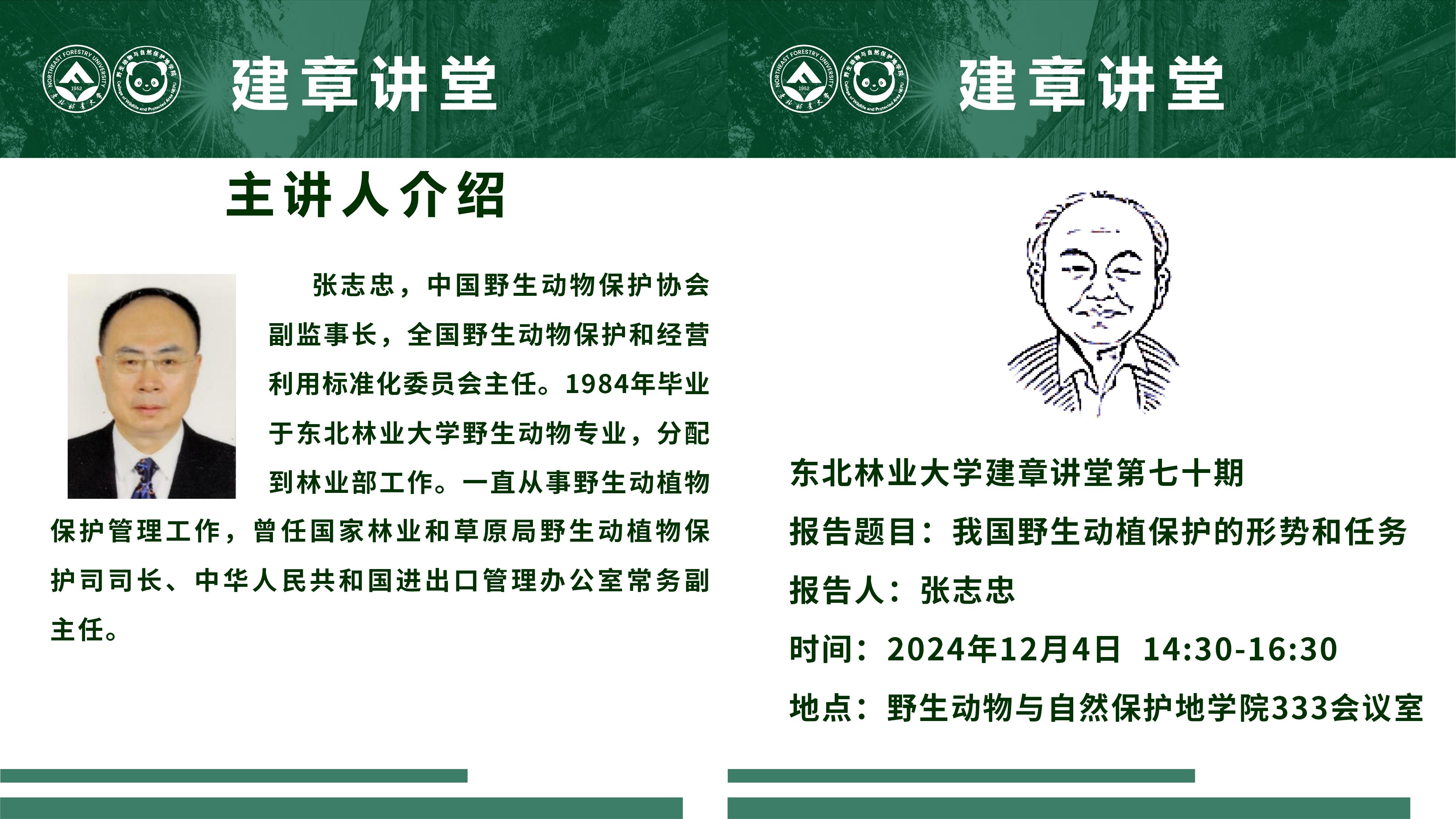 张志忠,中国野生动物保护协会副监事长,全国野生动物保护和经营利用标准化委员会主任。1984年毕业于华体会官方网页版野生动物专业,分配到林业部工作。一直从事野生动植物保护管理工作,曾任国家林业和草原局野生动植物保护司司长、中华人民共和国进出口管理办公室常务副主任。