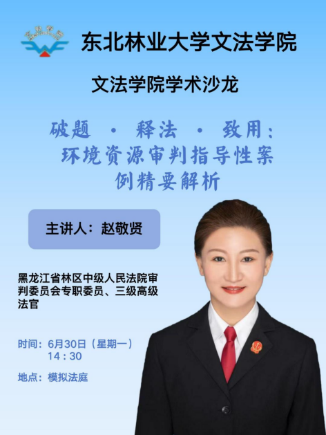 主讲人简介:赵敬贤,黑龙江省林区中级人民法院审判委员会专职委员、三级高级法官。
