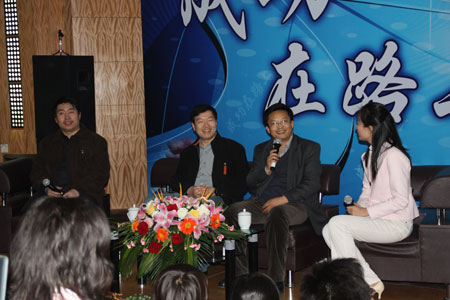在本期节目中,我校全国“百篇优秀博士论文”获得者王清文、高大文、胡英成等三位嘉宾应邀讲述他们成功背后的故事。三位嘉宾都是我校的杰出校友,具有较高的学术创新成就,同时也经历了非凡的奋斗经历。在节目过程中,三位教授阐释了他们对成功的不同定义,讲述了撰写博士论文中的种种经历,以及人生不同发展阶段的拼搏足迹。胡英成教授认为,成功就是无悔的去追求心中的理想,做好自己的事情,在职业上有所建树,在精神上获得充实。高大文教授谈到在撰写博士论文过程中,在遇到由于仪器问题导致的“数据丢失”时如何于挫败中奋起,并在很短时间内实现了学术研究的突破。王清文教授现场为观众解释了阻燃剂的相关知识,讲述了自己三年考博的难忘经历。三位教师还谈到了个人的业余兴趣和日常生活内容,比如高大文教授热爱运动,王清文教授喜欢下棋,而胡英成教授钟情音乐。栏目组还特邀了王清文教授的爱人隋老师做客现场,并播放了工作人员预先录制的隋老师对王清文教授深情感言的录像,而王清文教授则向观众讲述了他与隋老师之间华体会(中国)一副旧军棋背后的真情故事。同时节目还以播放录像的形式,向观众展示了三位教授在学生眼中的形象,其中有感恩的话语,也有发自内心的祝福。三位教授还就同学们提出的金融危机下的大学生职业规划、论文撰写方法、80后大学生人生观塑造、研究生知识追求与金钱报酬关系等问题作了翔实精彩的回答。最后,三位教授以简短精辟的寄语对大学生成长成才提出了殷切的期盼和祝福。本期节目在主题曲《在路上》充满激情欢快的旋律和观众雷鸣般掌声中圆满谢幕。