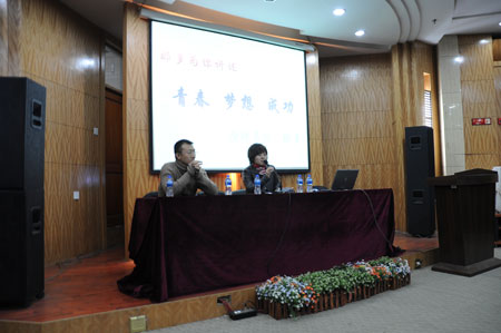 2009年10月29日晚18:30,青年作家那多应图书馆和学生社团圈点讲坛的邀请,在图书馆学术报告厅举行了“青春•梦想•成功”讲座。