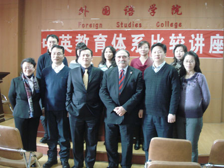 2010年3月16日下午2:00—3:30,外国语学院于学院多功能厅(一教406室)成功举办了“中英教育体系比较”讲座。我院特邀英国伍斯特大学的中国部主任John Nixon教授和学校驻华代表谢源晖教授担任此次讲座的主讲人。此外,参加讲座的嘉宾有外国语学院副院长岳喜华教授、副院长郭永刚教授,学院老师和同学也积极地听取了此次讲座。