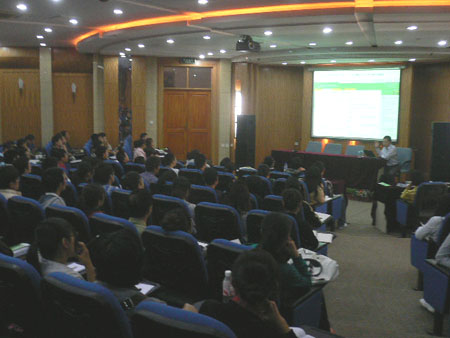 金秋九月,空气中弥漫着果实的香甜,在这硕果累累的九月,图书馆为全校师生送出了多场集中了丰硕科研成果的数据库讲座,分别是“中国知网新平台”、“万方数据库新平台”、“Elsevier Science Direct Onsite数据库”、“SCI, SSCI, A&HCI数据库”的讲座。特别是9月17日进行的SCI数据库讲座,吸引了我校的师生。博士生导师带着自己的学生结合研究课题进行学习、硕士生为自己开题进行探索、本科生为数据库的各项功能而感叹。全球高速发展的科学技术,提高信息获取的意识和能力,将帮助我们在科研的道路上不断取得成功,知己知彼,百战不殆。SCI数据库的检索功能和分析功能可对研究课题进行追根溯源,未来分析,可以帮助我们检索全球的合作伙伴、顶尖的研究机构、优势学科、文献来源、最有实力的国家。因此掌握数据库的检索技巧,可以收获最先进的科研成果。图书馆会陆续进行各类数据库的讲座,把这些讲座直接送到各个学院、送到各个研究课题中。为满足大家的要求,SCI数据库的讲座课件可以通过邮箱获取,也可以到图书馆检索教研室进行检索技巧指导学习。(吴桂金、何力、梁冬莹)