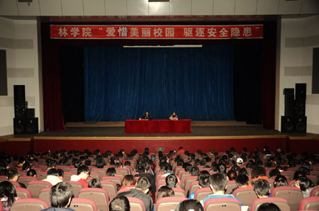 为使林学院学生牢固树立安全意识,切实保护学生生命财产安全,林学院于3月28日晚6:30在科学会堂面向学院全体同学举行了以“爱惜美丽校园,驱逐安全隐患”为主题的安全知识讲座。