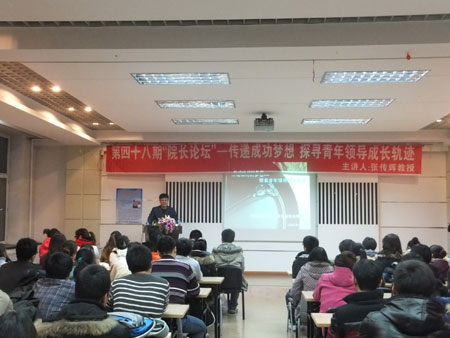2011年12月6日,由我校研究生院团委组织策划的第四十八期“709院长论坛”主题讲座圆满结束。中国青少年研究会理事、黑龙江省毛泽东思想概论教学研究会副秘书长,华体会官方网页版马克思主义教学研究部直属党支部书记张传辉教授为同学们带来了题为“传递成功的梦想,探寻青年领导成长的轨迹”的精彩讲座,并在现场和同学们进行了广泛而热烈的交流。