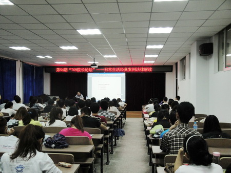 2012年6月13日,由我校研究生院科技创新中心策划的第五十四期“709院长论坛”主题讲座圆满结束。黑龙江省法学会民法学研究会副会长、文法学院副院长、法学一级学科负责人、硕士生导师李景义教授给同学们带来了以“日常生活经典案例的法律解读”为主题的精彩讲座,并在现场和同学们做了广泛而热烈的交流。