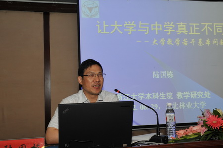 陆国栋教授从若干教育基本问题、教育模式基本分析、教学改革基本关系、大学课堂基本模式、大学教学基本任务、教学改革基本路径、实验教学基本思考、教学管理推进教学改革、教学方法改革与师生互动等九个方面,谈了“教”、“学”、“考”互融的教学改革和尝试。陆教授的精彩报告让我们领略了国家名师的风采,报告会历时两个多小时,现场不时传来大家会心的掌声和笑声。陆教授例举的浙江大学在教学模式和考试方法改革中的一些好的经验和做法,以简单问题启发大家思考,以复杂问题引导大家探索,深入浅出,举一反三,使我校教师和教学管理人员耳目一新、深受启发。