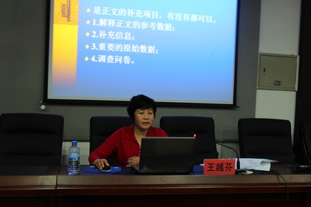 王越芬教授的讲座,深入浅出,为学生学位论文的选题、写作等提供了详细的指导。这次讲座反响热烈,现场气氛十分活跃,使在座师生受益匪浅。(陈晓楠)