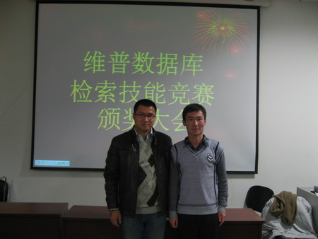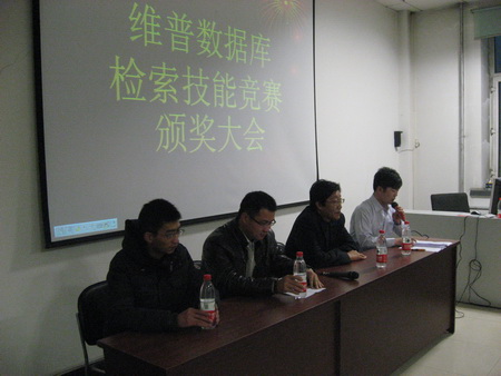 图书馆“维普数据库检索技能竞赛”已于近日圆满结束。颁奖典礼于12月14日下午3时30分在图书馆B楼016举行。来自维普数据库的东北地区经理李勇、黑龙江省销售经理卓人强,图书馆副馆长张凤斌等领导参加了颁奖典礼,颁奖典礼由林学院的杨磊同学主持。
