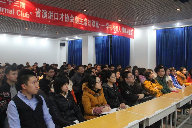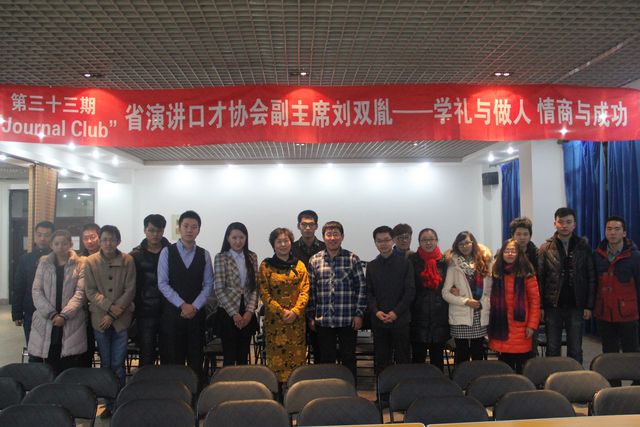 2014年12月19日18:30,华体会官方网页版校研究生会主办、机电工程学院研究生会协办的第三十三期“Journal Club”活动在研究生楼006室成功举办。黑龙江省演讲口才协会副主席、省演讲口才教育事业突出贡献者、省优秀思想政治工作者、哈尔滨理工大学马克思主义学院教授、学校优秀主讲教师刘双胤,以“学礼与做人,情商与成功”为主题,精彩地讲述了学礼与做人的重要性,并和现场的同学们分享了情商与成功之间的微妙关系。