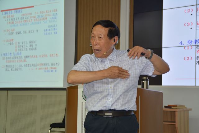 张学政教授首先从清华一位农村学生退学一事的反思,对怎么做一名教师做了深刻生动的诠释。他认为:做一位好老师,第一,要热爱教学,为人师表,通过自己的学识和对教育事业的热爱潜移默化影响到学生;第二,要有大家风范、人民教师气质和风度的境界与德行;第三,要培养出自己的独有的气质和风范;第四,要提高包括政治、道德、知识、法律、诚信、人文、心理、身体等方面的综合素质。其次,张学政教授阐述了怎样上好课程的第一堂课及如何利用好每节课的前五分钟的黄金时间激发学生的学习兴趣。他结合自己40多年的教学实践总结出教师授课要做到“四点四性两注意”,即“突出重点、讲清难点、设置疑点、安插兴趣点”,“讲究逻辑性、注重启发性、富有节奏性、力求形象性”,“注意案例教学、注意语言表达”。他告诉在座的老师,教学的艺术就是做人的艺术,要重内在修养而不是外在修饰,要用心去爱自己的学生,才能让课堂充满激情、智慧和快乐。